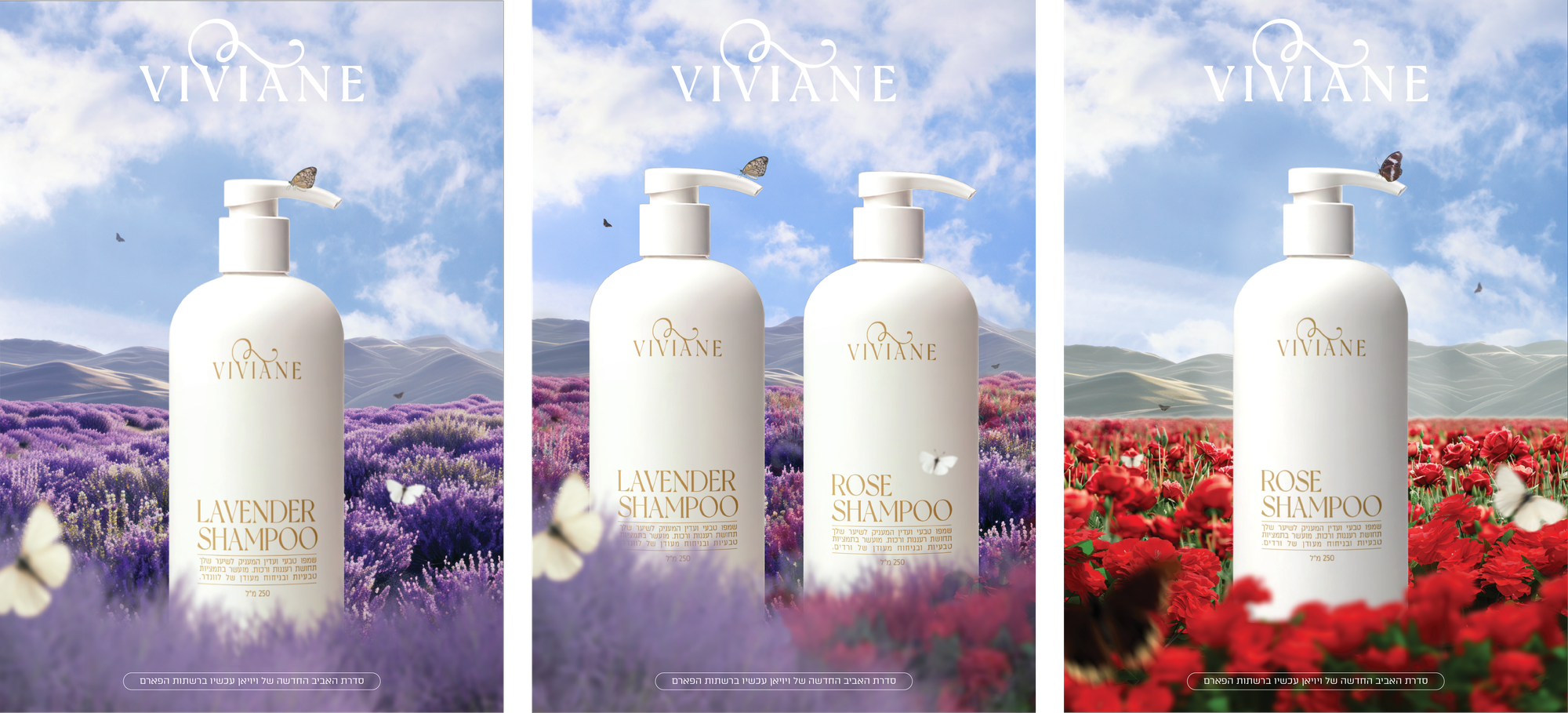 סדרת האביב של VIVIANE שמפו בניחוח וורד ולבנדר, לנשים בגילאי 30-50 המחפשות רגע של יוקרה ורוגע בתוך שגרת היומיום. מעבירה תחושת שלווה רוגע איכות וטבע. נופים פורחים, לצד עיצוב מינימליסטי ויוקרתי של המוצר, יוצר מסר של טיפוח איכותי המשלב טבעיות ואלגנטיות.